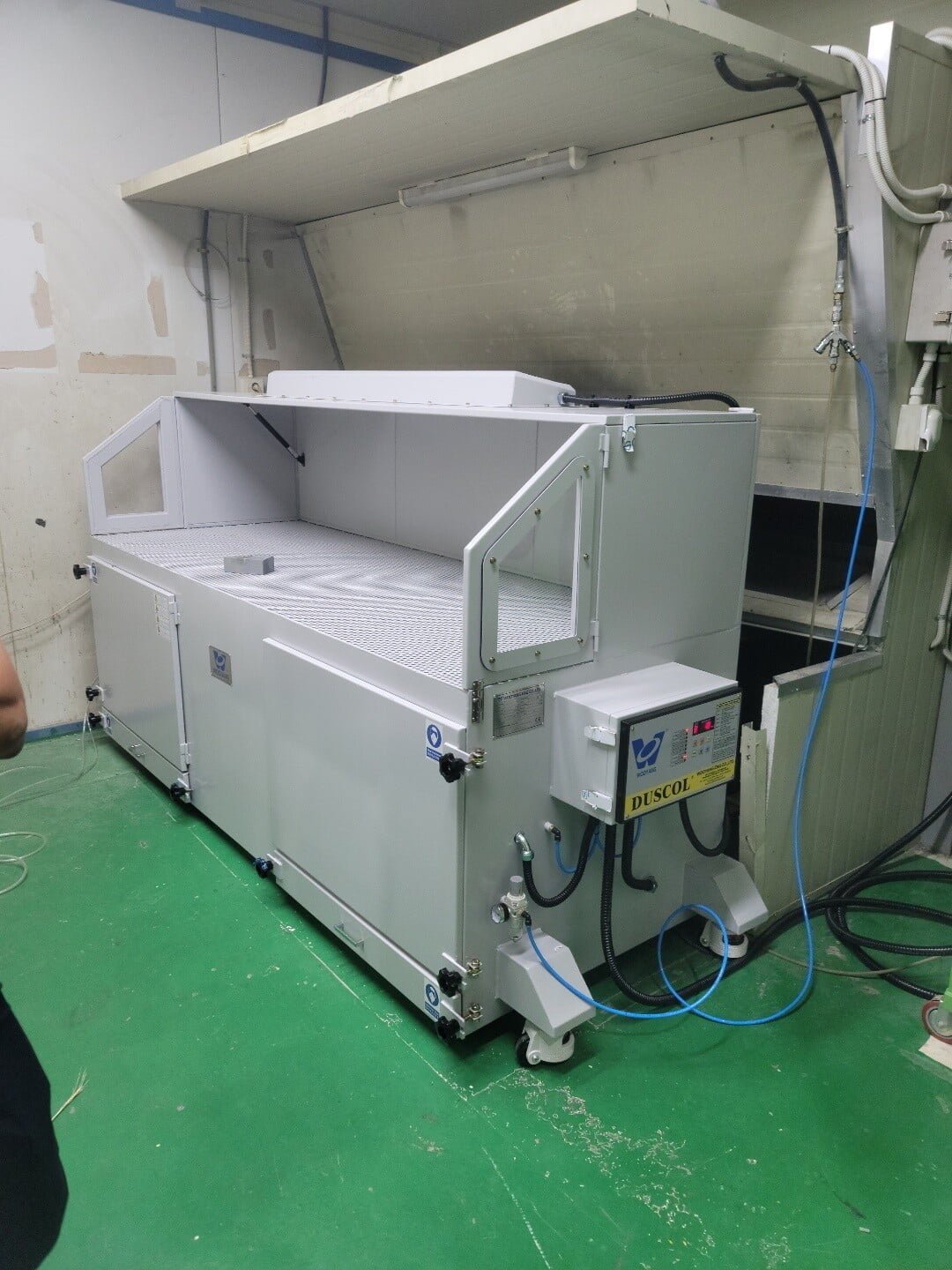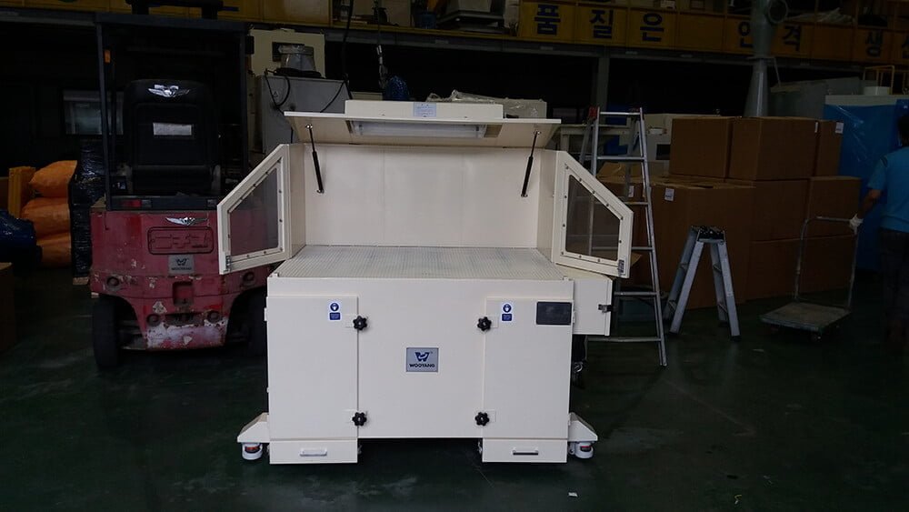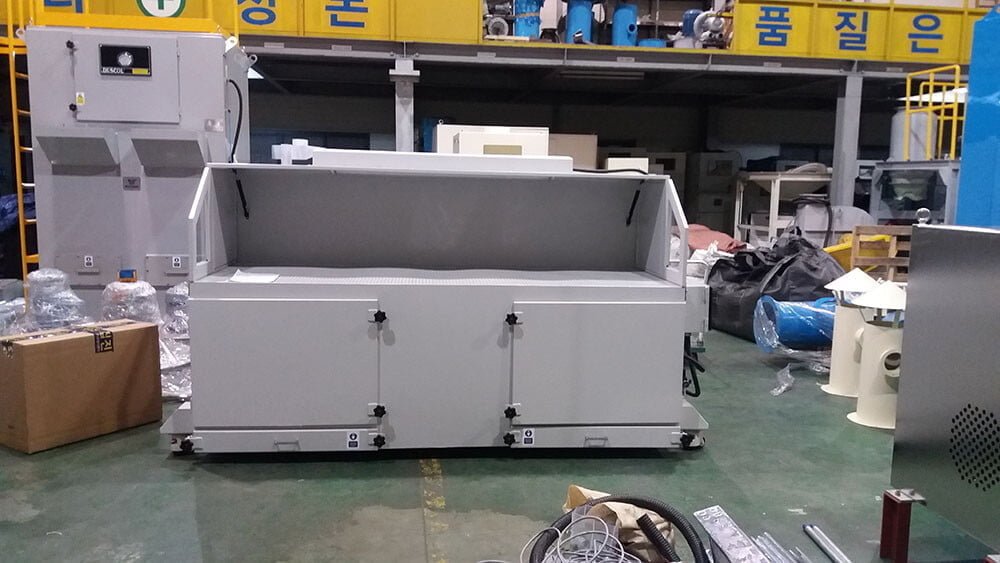 As an integrated form of a worktable and a dry dust collector, this product instantly collects dust towards the bottom of the worktable and prevents dust spreading.