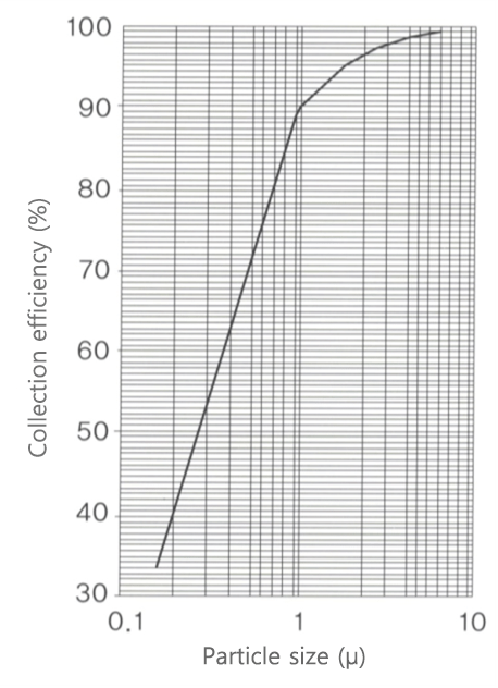 - Filtering efficiency for non-water-soluble dust (e.g., ore, metal, etc.) is also great (see the graph).