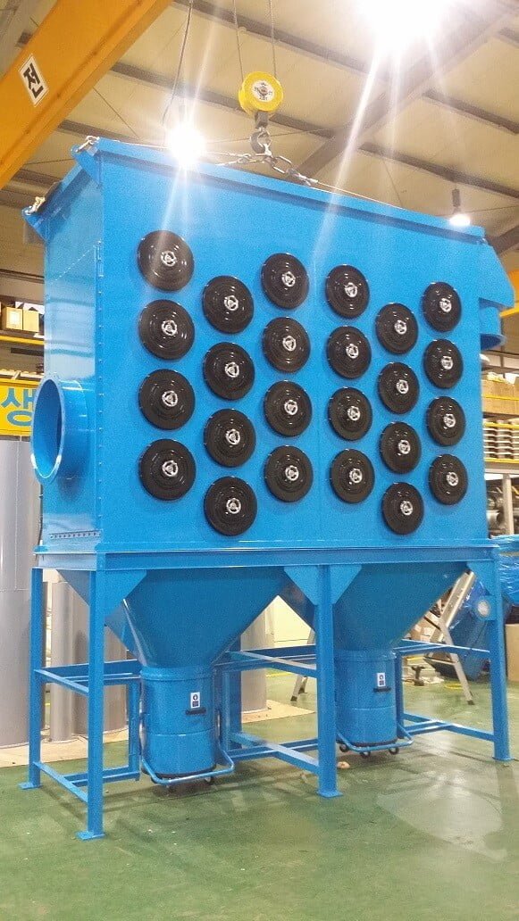 - Ensures great dust collection and filtering efficiency because an air pulse nozzle in each filter sprays high-pressure air in 360-degree directions and cleans filter dust.