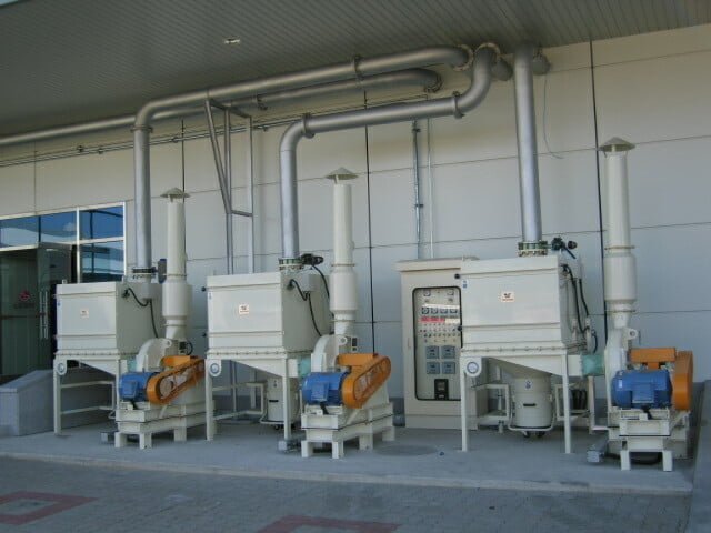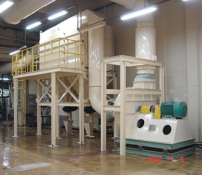 Woodwork factory, Grain processing factory, Cement factory, Fertilizer blending factory, Fodder factory, Mineral processing factory, Chemical factory, Pharmaceutical factory, Plastics factory, Food factory, Flour milling factory, etc.