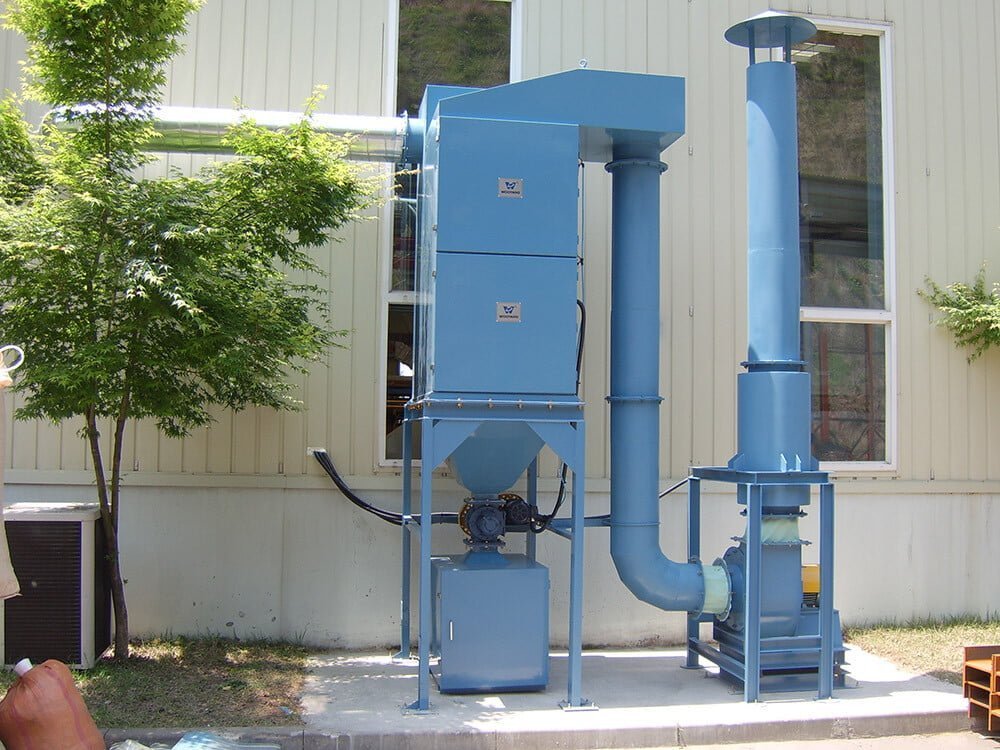 - Since air flows from the top to the bottom with no influence of a rising air current, it ensures great dust collection and filtering efficiency.