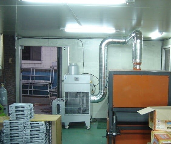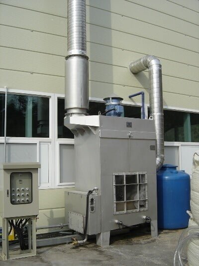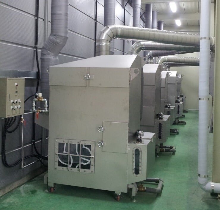 - Effective in filtering special dust which cannot be handled with conventional filter-type dust collectors (e.g., sugar-containing dust, explosive dust, high-temperature dust, hazardous gas, bad smell, combustible dust, etc.).