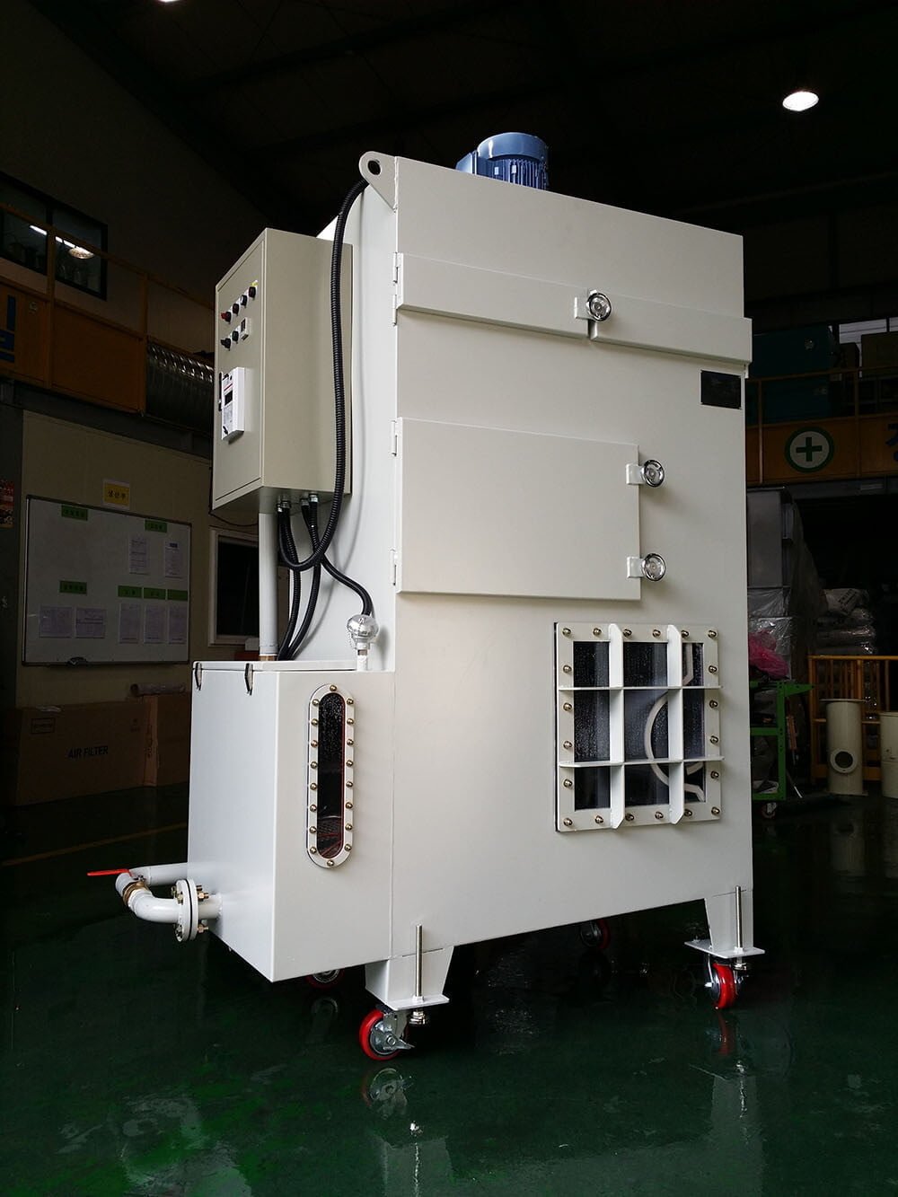 As a wet dust collector designed to filter dust using powerful water vortex, this product is effective in collecting high-temperature and ultra-fine dust and low in maintenance costs without a filter.