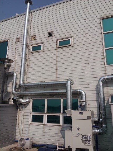 - For the treatment of high-temperature gas (150℃ or higher), it is required to attach a cooling nozzle to the inlet and lower temperature up to a certain point to have the gas sucked by the dust collector. Then, filtering efficiency tends to improve because of vapor.